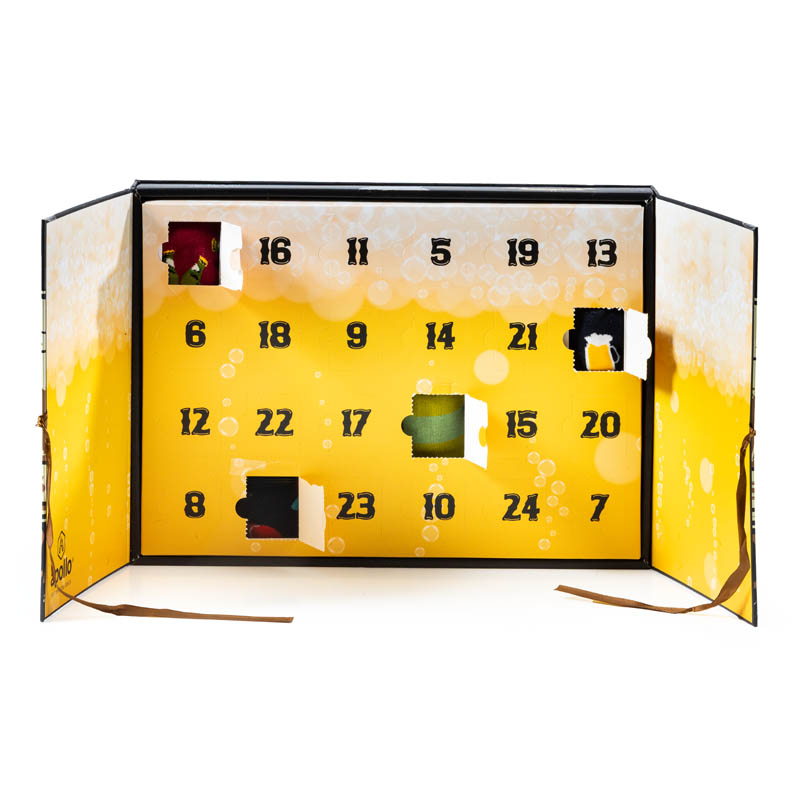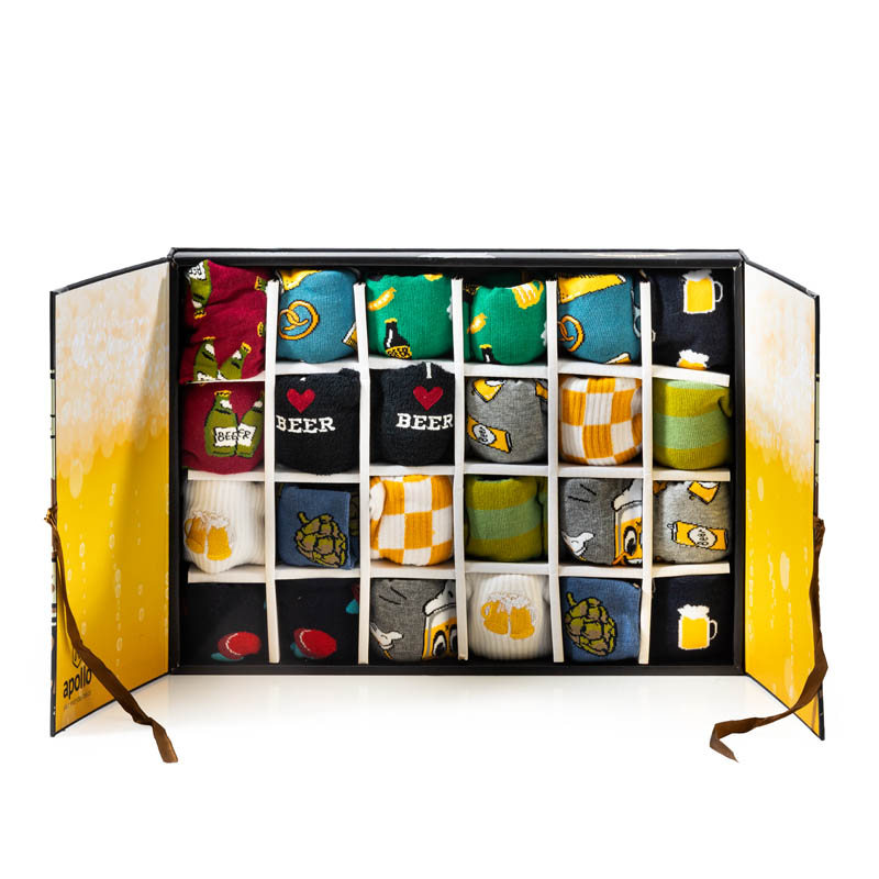 Beer Socks advent kalender, bevat 12 paar herensokken elk met een uniek bier-dessin, maat 42-47